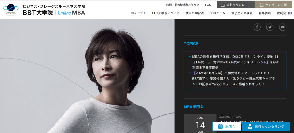 日本語授業による基礎課程と、英語授業による上級課程によりMBAをオンラインで取得するプログラムです。最長在籍期間は5年間と、長期的にMBA取得ができます。