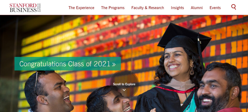 カリフォルニア州スタンフォードに位置する私立大学大学院です。全米で最も入学が難しい大学院と言われており、合格率は10%を大きく下回ることが多々あります。