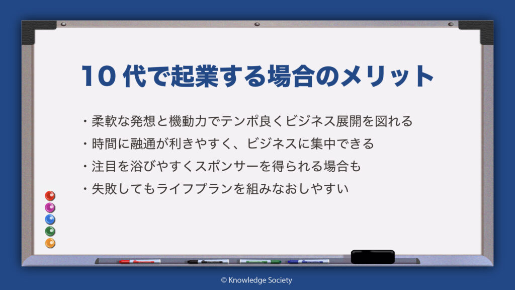メリットを見れば10代の若者らしい強みがあり、勢いに乗れば社会進出も可能です。10代ならではの目線や鋭い切り口は大きな武器と言えます。10代の起業家はメディアからも注目されやすいので、支援を得られるケースもあります。