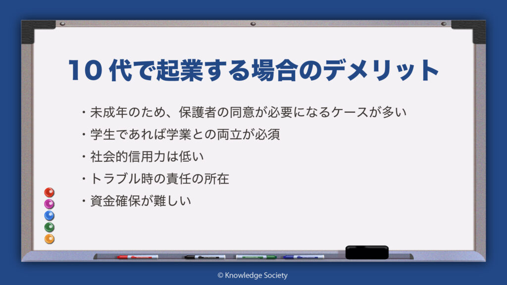 さて、そんな10代で起業する場合のメリット・デメリット、制約ポイントはどんな部分にあるのでしょうか。