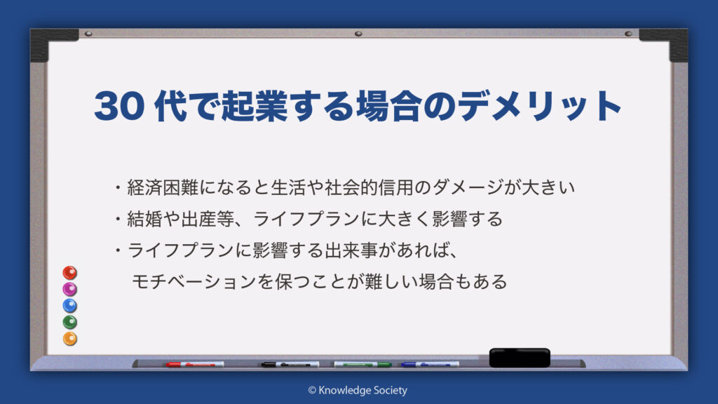 30代で起業する場合のデメリットや、制約ポイントはどんな部分にあるのでしょうか。