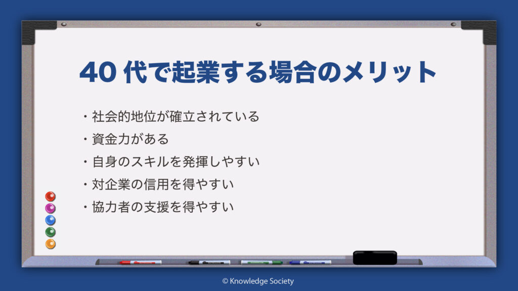 何歳で起業してもメリット・デメリットはありますし、制約はあります。何歳で起業するかを決めるのは自分次第ですが、どのタイミングで起業するのが自分にとってベストなのかを考えると準備もしやすいと思います。