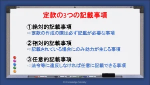 「相対的記載事項」とは、記載は必須でありませんが、記載されている場合にのみ効力が生じる事項です。