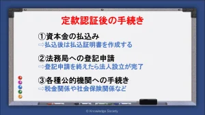 ここでは、定款認証の後に必要な各種手続きを解説します。