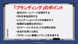 それでは、実際にブランディングをする場合は、具体的に何をするべきなのでしょうか。