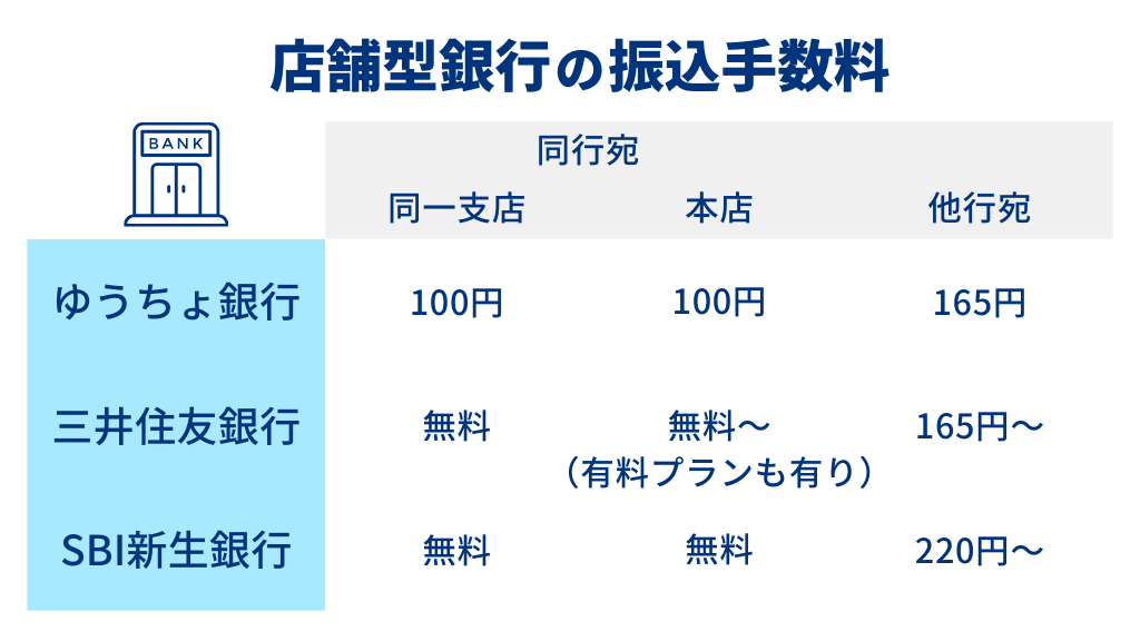 | ゆうちょ銀行 | 100円 | 100円 | 165円 |