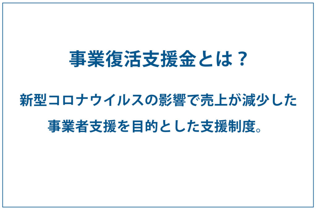 事業復活支援金とは、新型コロナウイルス感染拡大の影響で売上が減少した事業者の支援を目的とした制度であり、国内の中小法人と個人事業主が利用可能です。