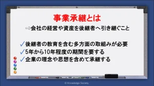 事業承継とは、会社の経営や資産を経営者から後継者へ引き継ぐことを指します。