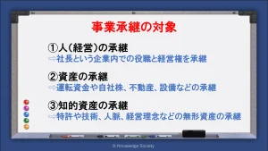 経営権や株式だけでなく、資産や権利といった包括的な経営資源も引き継ぐ必要があります。
