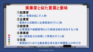 「起業家」や「経営者」と意味が似ていますが、厳密には異なる言葉です。