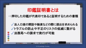 法人の印鑑証明書とは、重要書類等に押印した印鑑が本当に企業の代表印であることを証明するための書類です。