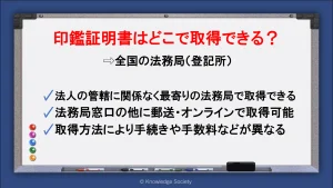 個人の印鑑登録証明書の場合はマイナンバーカードがあれば取得できますが、法人の場合は法務局への申請が必須です。