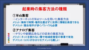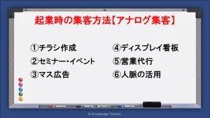 もちろん起業前に決めた集客方法を事業の中で変更していくことは有効ですが、必ず軸となる手段を事前に決めておきましょう。