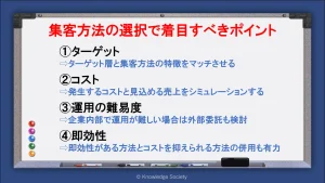 自社が有するノウハウで効果的に運用できる集客方法かも判断が必要です。