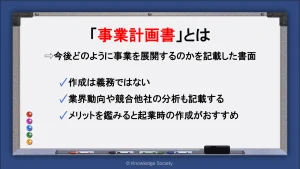 事業計画書については「起業時に作成する事業計画書とは~書き方や目的フォーマットをわかりやすく紹介~」で詳細に解説しています。