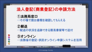 法人登記の申請方法や必要書類、注意点は詳しく後述していきます。