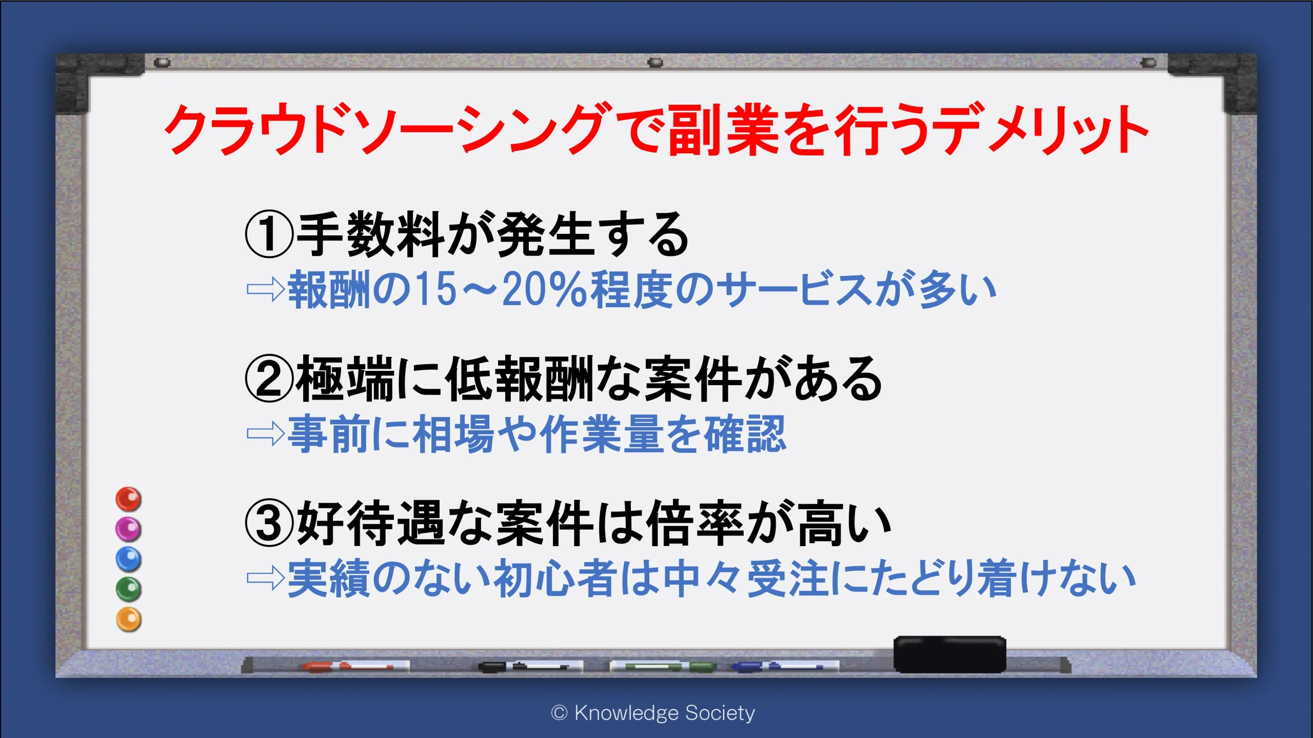 シェアオフィス・バーチャルオフィス@東京都千代田区|ナレッジソサエティ > 起業ノウハウ > 初心者の副業はクラウドソーシングがおすすめ!仕事内容や注意点、サービス8選も解説 > クラウドソーシングで副業を行うデメリット