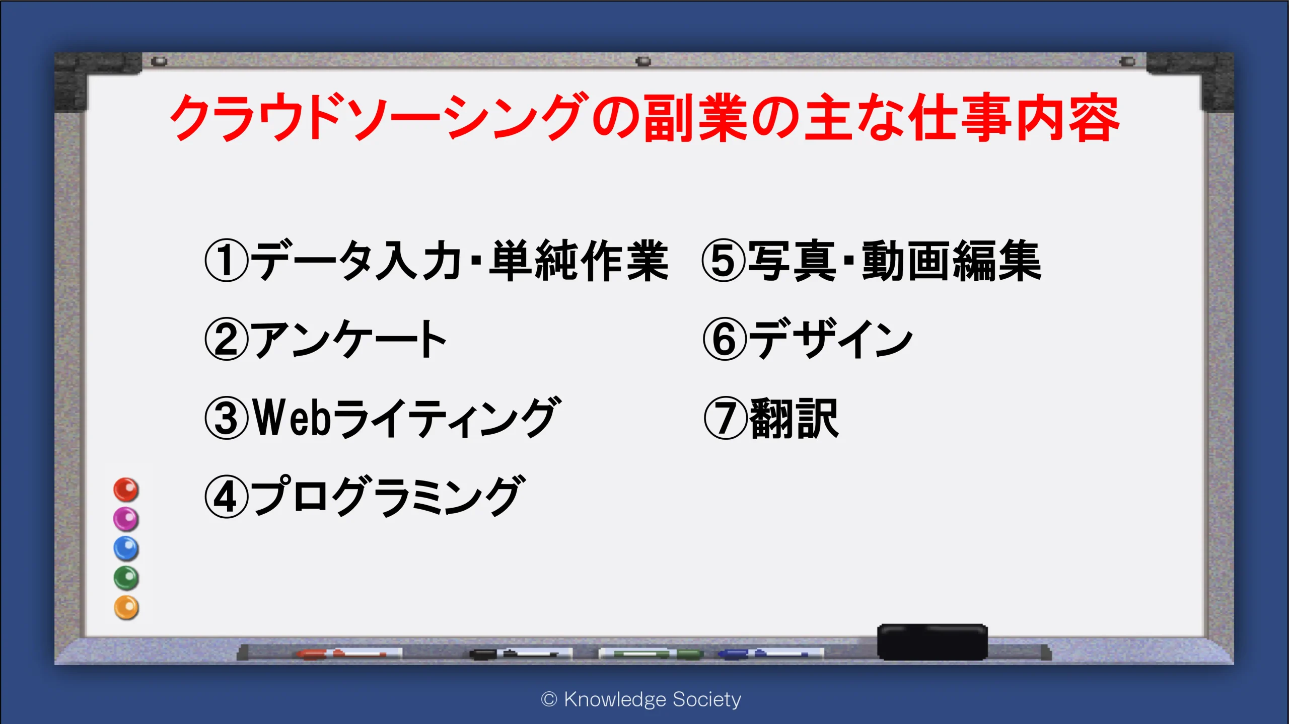 シェアオフィス・バーチャルオフィス@東京都千代田区|ナレッジソサエティ > 起業ノウハウ > 初心者の副業はクラウドソーシングがおすすめ!仕事内容や注意点、サービス8選も解説 > クラウドソーシングの副業の主な仕事内容