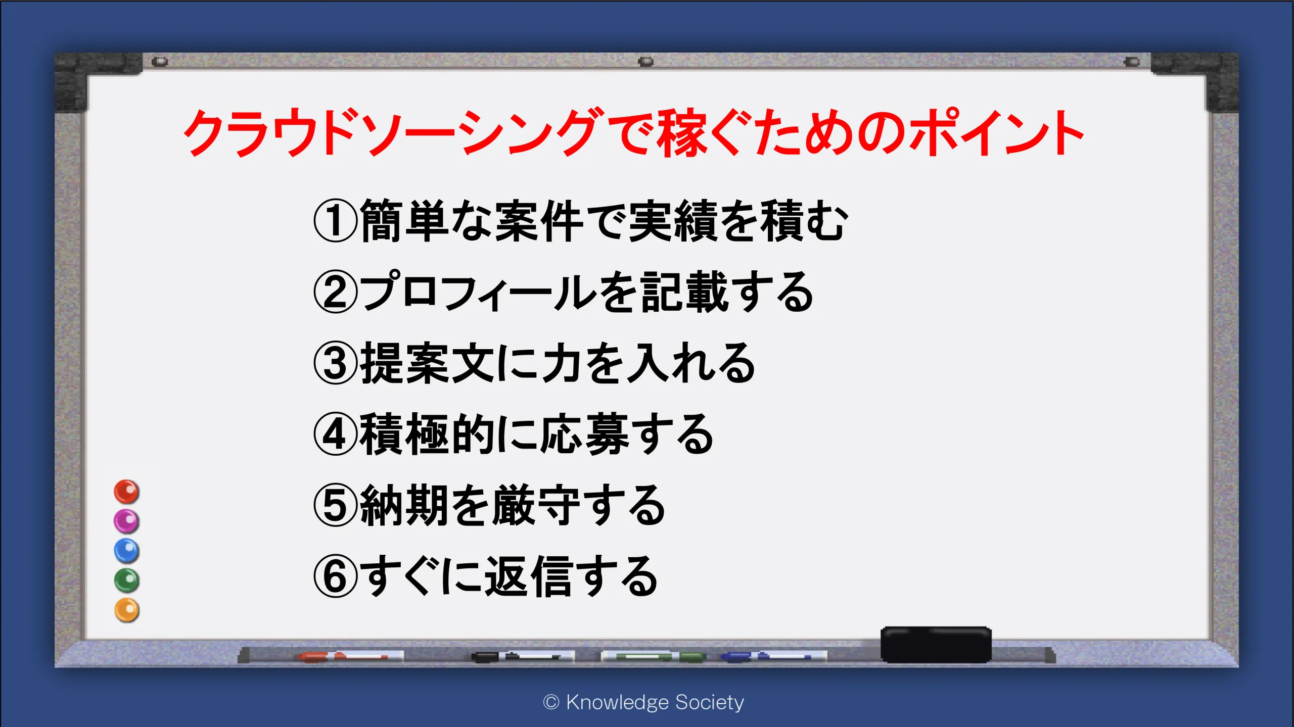 シェアオフィス・バーチャルオフィス@東京都千代田区|ナレッジソサエティ > 起業ノウハウ > 初心者の副業はクラウドソーシングがおすすめ!仕事内容や注意点、サービス8選も解説 > クラウドソーシングで稼ぐためのポイント