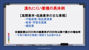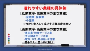 実際に、高開業率の業種については、廃業率も高い傾向にあります。