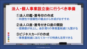 また、法人や個人事業を設立した後に行うべき準備もあります。
