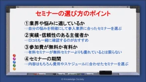 最初から習得したい知識や将来の目標が定まっていれば、開催意図があいまいなセミナーを除外できます。