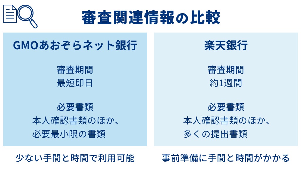 一方で、楽天銀行は審査に約1週間を要します。また、必要書類も多いため、事前準備に時間がかかる恐れがあります。