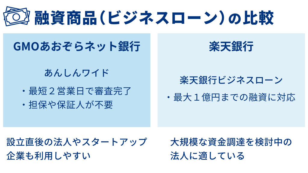 GMOあおぞらネット銀行と楽天銀行の法人向けビジネスローンを比較します。