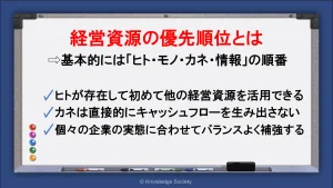 ただし、実際に優先すべき経営資源は企業の実態によっても異なります。
