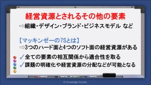 また、経営資源を考える際は「マッキンゼーの7S」のフレームワーク存在します。