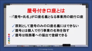 屋号付き口座とはその名の通り、屋号が含まれた事業用の銀行口座です。
