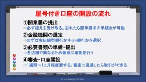 ここでは、屋号付き口座の開設手続きの大きな流れを解説します。