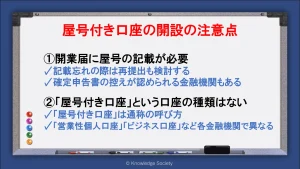 屋号付き口座を開設する際の注意点が2点ほどあります。