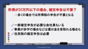 「20万円以下で確定申告が不要」の条件は「収入金額」ではなく「所得金額」が基準となります。