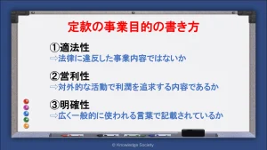 定款の事業目的は、資金調達を申込む金融機関や、新規の取引先が真っ先に目にする部分といっても過言ではありません。