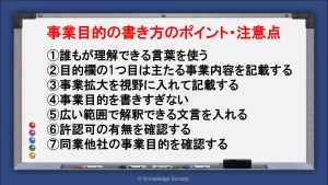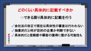 上記の「明確性」でも触れましたが、事業目的は誰もが理解できる言葉で記載をしましょう。