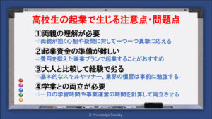 加えて、高校生は通常の起業家と比較して、資金や経験、人脈、ノウハウといった様々な点で後れを取りやすいです。
