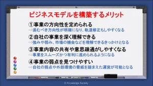 また資金調達を行う際も、審査担当者や投資家に事業内容を伝えやすくなり、質問を受けても、ビジネスモデルが体系的に整理されているため、的確な回答が可能となります。