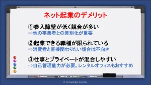 自宅での起業では「プライバシーの問題」や「生活と仕事の混在による生産性の低下」といったデメリットがあると解説しました。
