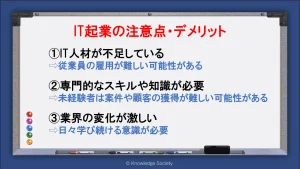 IT起業特有の注意点やデメリットとして、以下のような要素が挙げられるため、起業前に必ず確認しましょう。