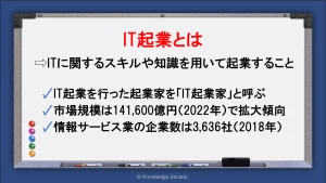 そして、IT起業を行った経営者を「IT起業家」と呼ぶことも多いです。