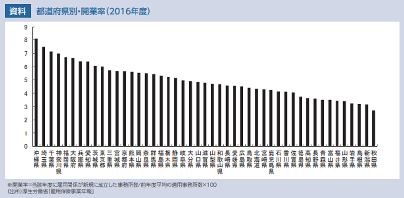 しかし、都道府県別の開業率を見ると、必ずしも都市部のみが起業場所として注目を浴びているわけではありません。