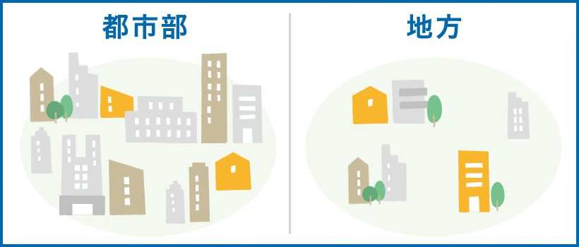 賃料に大きく影響する「地価」は、都市部ほど高く地方部ほど安いためです。