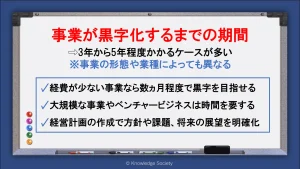 一般的に、新規事業を立ち上げてから黒字化するまでの期間は3年から5年と言われています。