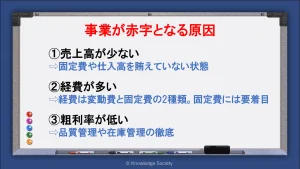 そして、事業が赤字となる原因は大きく分けて3つしかありません。自身の事業内容は、どの側面から赤字になっているかを確認しましょう。