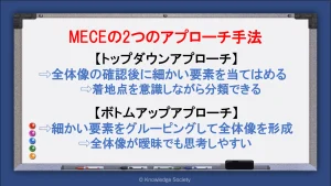 全体像が不明瞭なためダブりや漏れが出る場合もありますが、未知の領域の場合はトップダウンアプローチよりも効率的に思考ができます。
