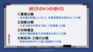 これらを適切に判断するには、問題を細かく分解して考えることが重要で、分解を行う際のコツがMECEです。
