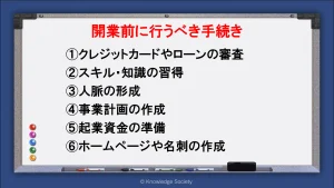 起業準備の段階でホームページや名刺の作成をしましょう。人脈形成時に名刺の交換やホームページの紹介がしやすくなります。