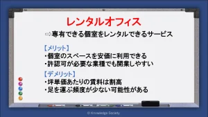 レンタルオフィスについては、以下のページで詳細に解説しているため、興味のある方はぜひご覧ください。