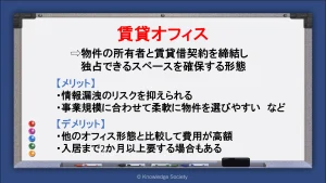 一方で賃貸オフィスのデメリットは、他のオフィスの形態と比較して費用がかかる点です。